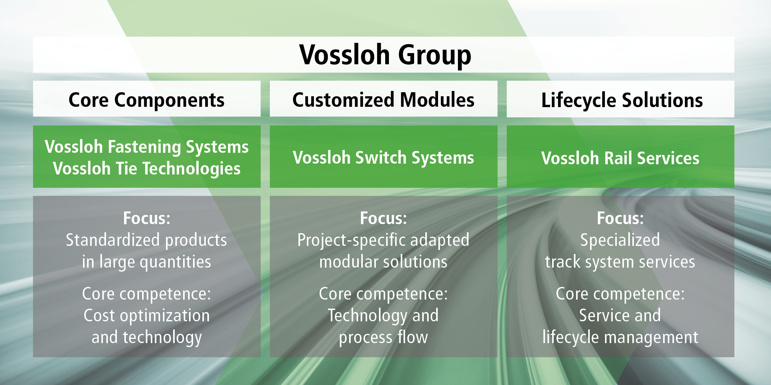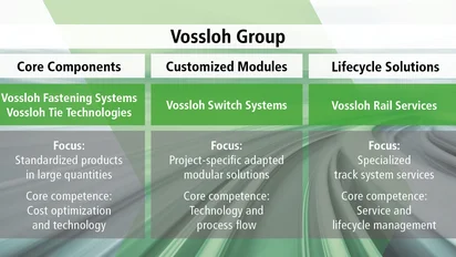 Vossloh is a listed, globally leading technology company specializing in rail infrastructure. With over 140 years of experience, we offer a comprehensive portfolio transforming the railway industry that integrates innovative products and pioneering technologies — all from a single source. Our solutions, including rail fastening systems, concrete sleepers and switch systems, as well as digitally empowered, tailored services for every stage of the rail track lifecycle, are designed to maximize track availability and advance sustainable mobility.