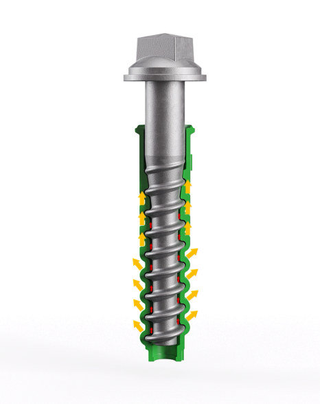 The optimized geometry and robust, water-repellent material of the dowel in the screw-dowel combination reduce the transverse forces in concrete sleepers, thereby protecting the concrete sleeper and track superstructure and sustainably reducing the life cycle costs for the entire infrastructure.