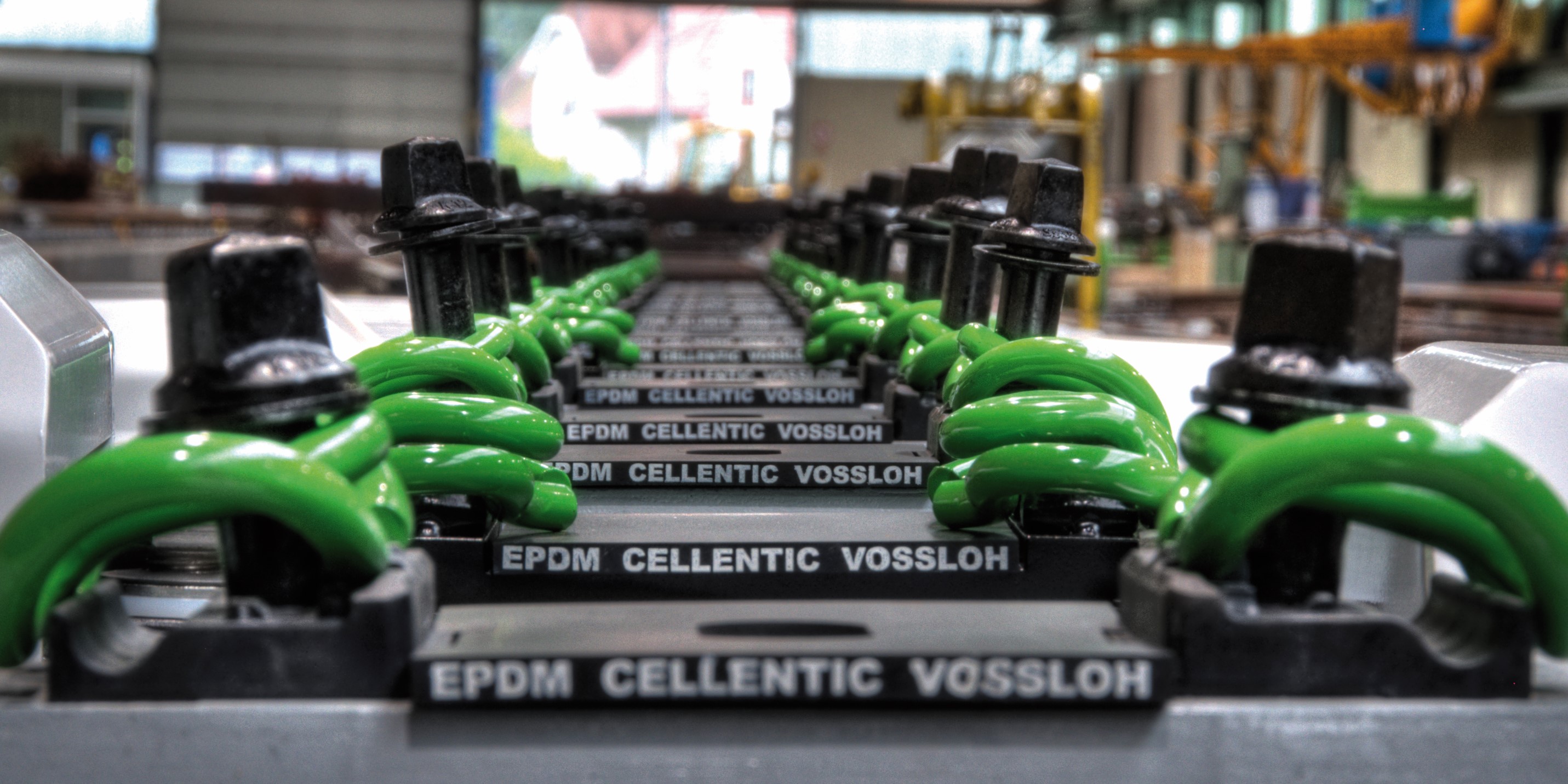 Vossloh offers a suitable fastening system for every type of rail installation. Its highly elastic intermediate layers made of cellentic take on the elasticity of the ballast superstructure.