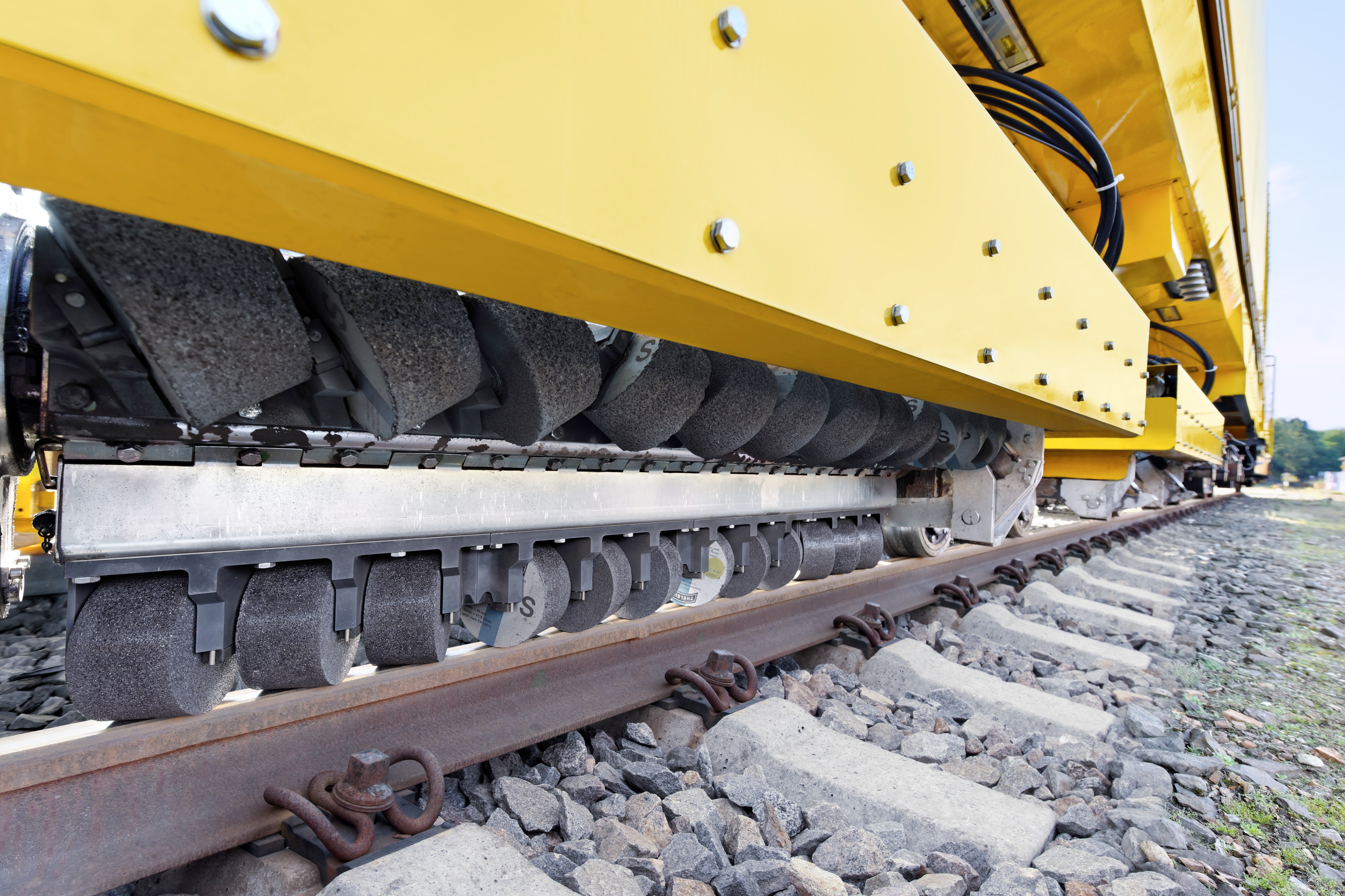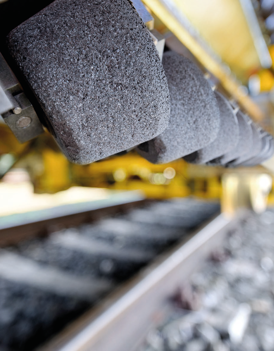 The contact forces from the rolling wheel cause a thin martensitic layer to form on the running surface. This layer, hardened by cold deformation, is approx. 0,1 mm thick and provides fertile ground for rolling contact fatigue damage. Due to high speeds and heavy axle loads, the initially micro-fine surface cracks grow exponentially into head checks and squats, especially on high-speed tracks. The now severe rail defects are spreading into the intact base material and can only be removed through substantial material removal, such as milling.