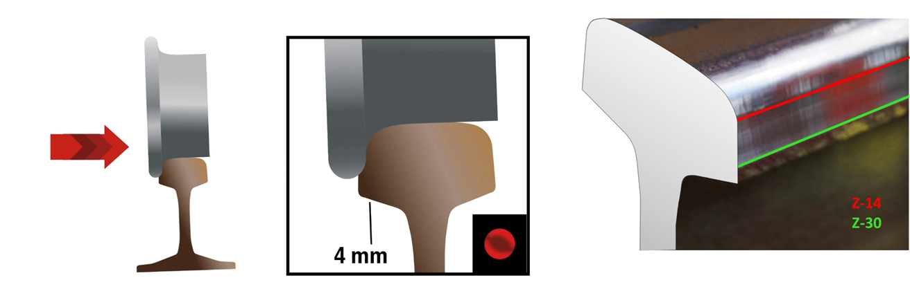 - Elimination of rail head defects in the transverse and longitudinal profile