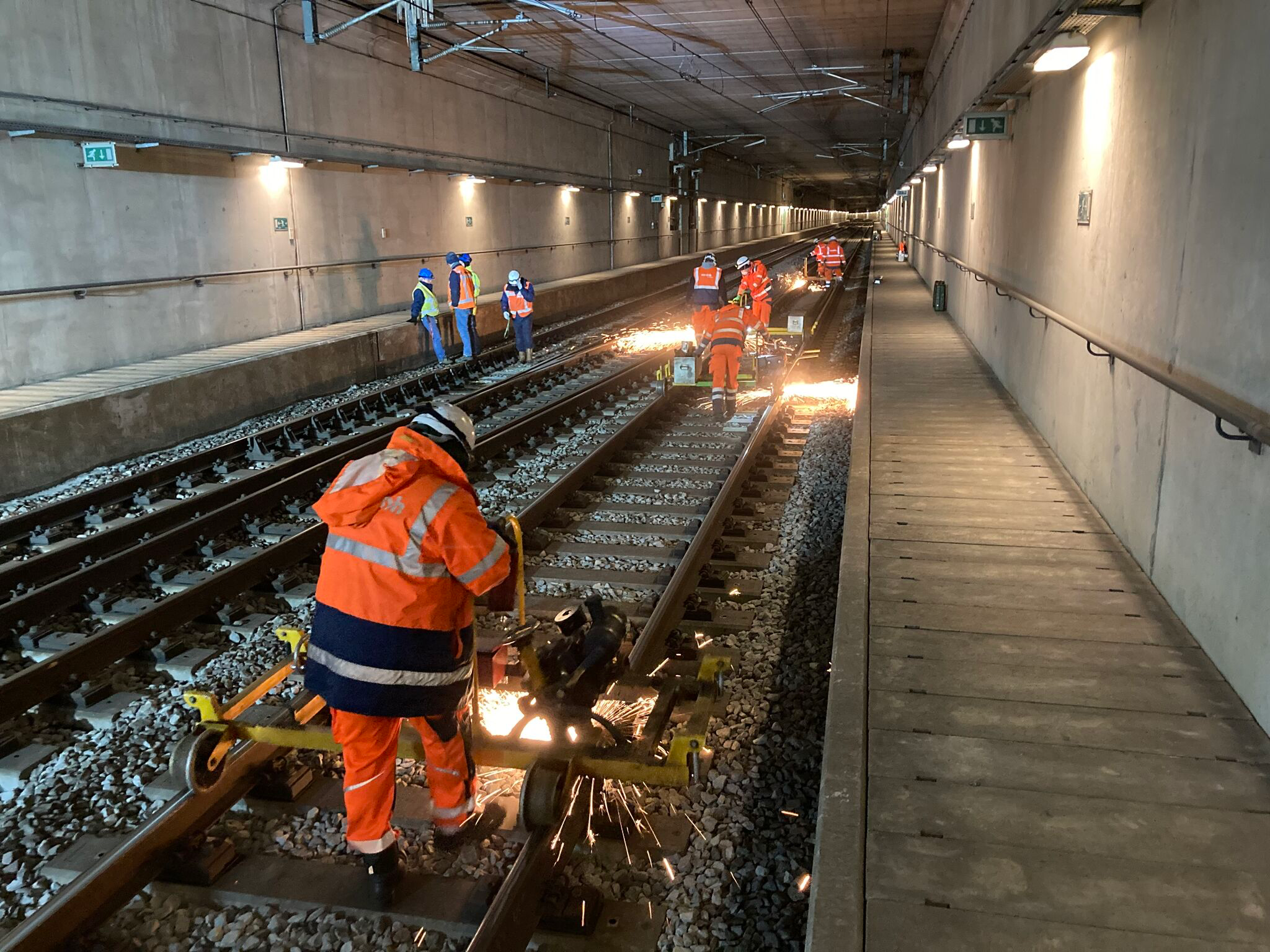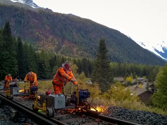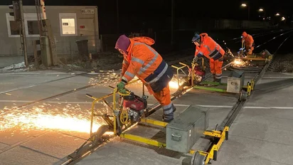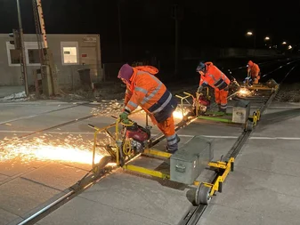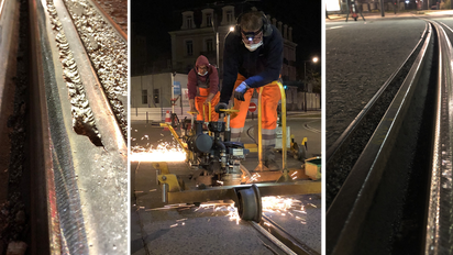 With the Flexis system, Vossloh offers a complete solution for turnout maintenance. Handheld and track-guided, the machines are on track within minutes and cover all processing stages – from initial grinding of new installations to preventive, acoustic, and maintenance grinding, all the way to corrective repair measures. In addition, the Flexis teams can take on special tasks, such as double junctions, rail extensions, level crossings or short track sections with individual faults, such as slip zones, squats, etc., which large machines cannot perform due to their design or whose use is too costly.